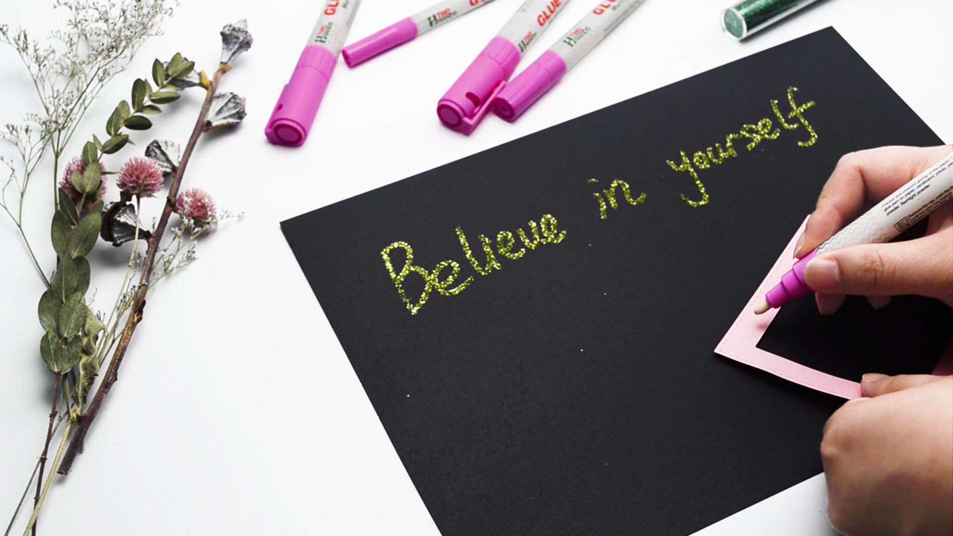 Press the nib to draw the pictures you want, then spray or squeeze the glitter on the picture, just shake or use finger to create the wonder drawings.