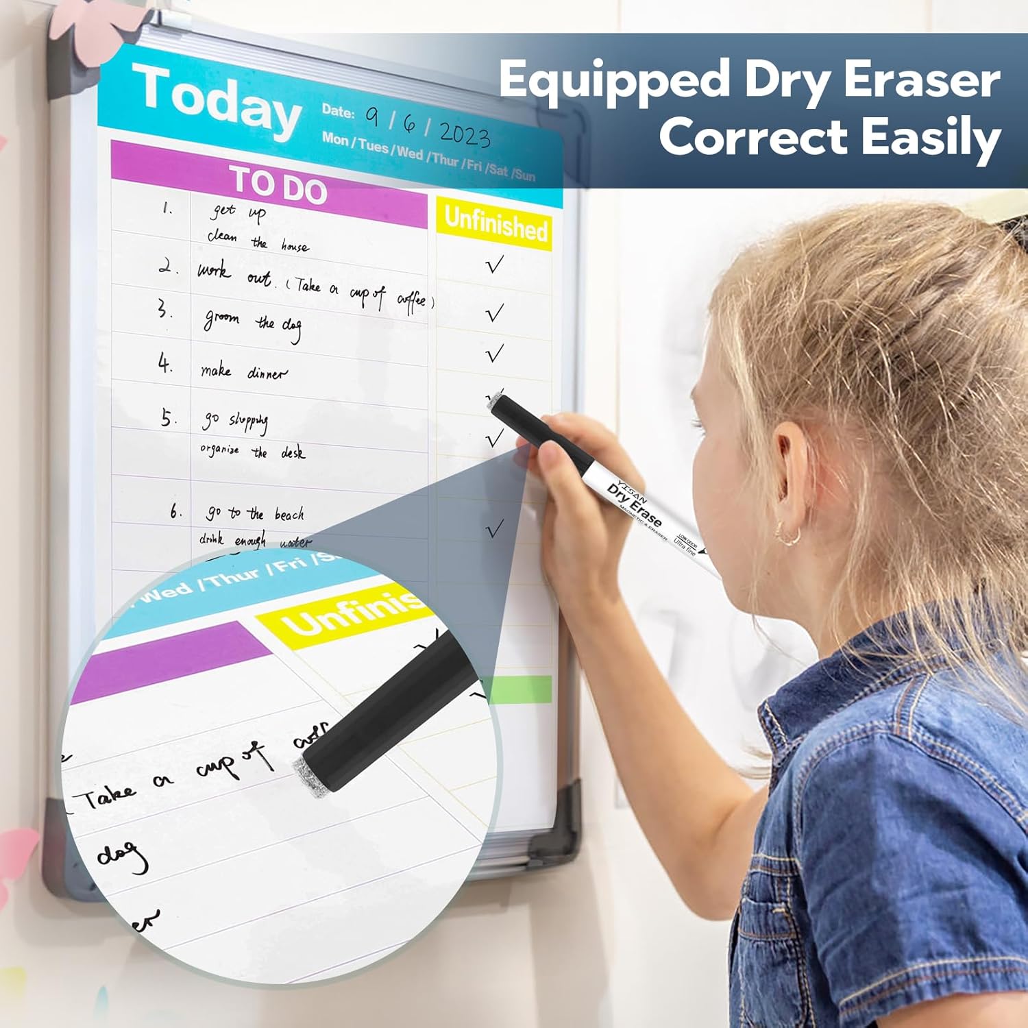 Many applications benefit from the precision of Ultra Fine Tip Dry Erase Markers. Professionals frequently use them for detailed notes on personal whiteboards, glass panels, or small presentation boards during collaborative sessions. Educators find them ideal for intricate diagrams on individual student whiteboards, for annotating laminated maps, or for creating precise labels in classrooms. In office environments, teams utilize these markers for precise labeling on laminated charts, project management boards, or individual task trackers. They are also perfect for marking up reusable calendars or creating detailed schedules. Individuals employ them for organizing personal planners, making grocery lists on small magnetic boards, or leaving concise messages. Their fine point makes them suitable for brainstorming sessions requiring small, distinct ideas or for creating elaborate visual aids where space is limited. These markers ensure clarity and neatness in any environment where detail is paramount, making them a versatile tool across many sectors.